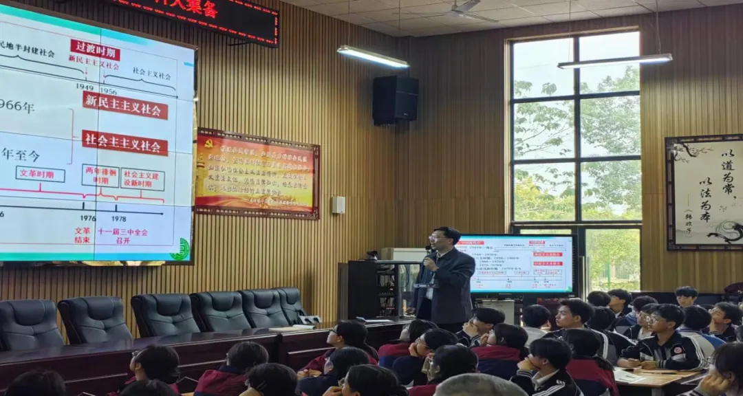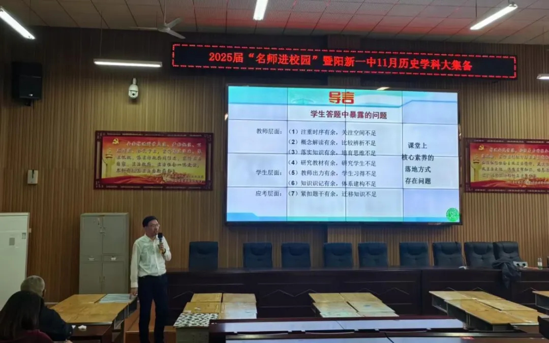 为了提升教师备考水平,优化复习备考策略,阳新一中于 11 月 14日下午在明礼楼报告厅举行阳新县教育局2025届“名师进校园”暨阳新一中11月历史组大集备。阳新一中全体历史教师以及兄弟学校历史教师代表共同参与此次活动。