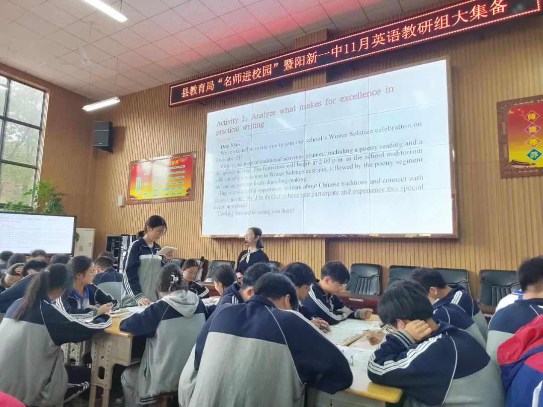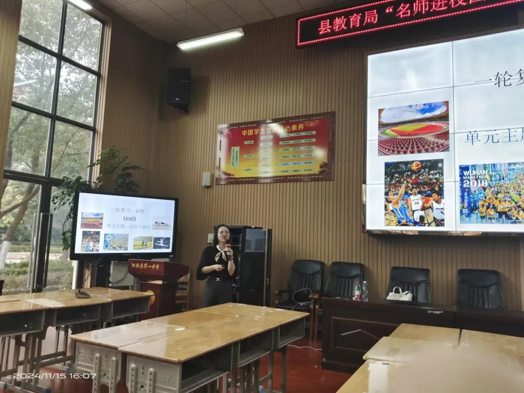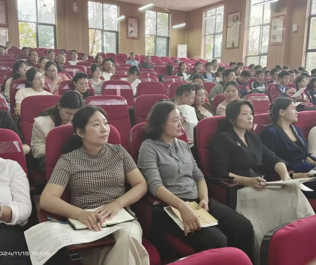 为了深入推进我县教学改革,助力2025届高三复习备考,11月15日下午,阳新县教育局2025届“名师进校园”暨阳新一中11月英语教研组大集备活动在阳新一中明德楼学术报告厅举行。此次活动特邀请华中师大一附中黄秀丽老师作一轮复习指导,阳新一中英语教研组蹲组校领导徐美姝副校长、阳新县高中英语教研员尹国华老师、阳新一中全体英语教师及县内兄弟高中高三英语教师参加本次活动。活动由阳新一中英语教研组长余艳主持。