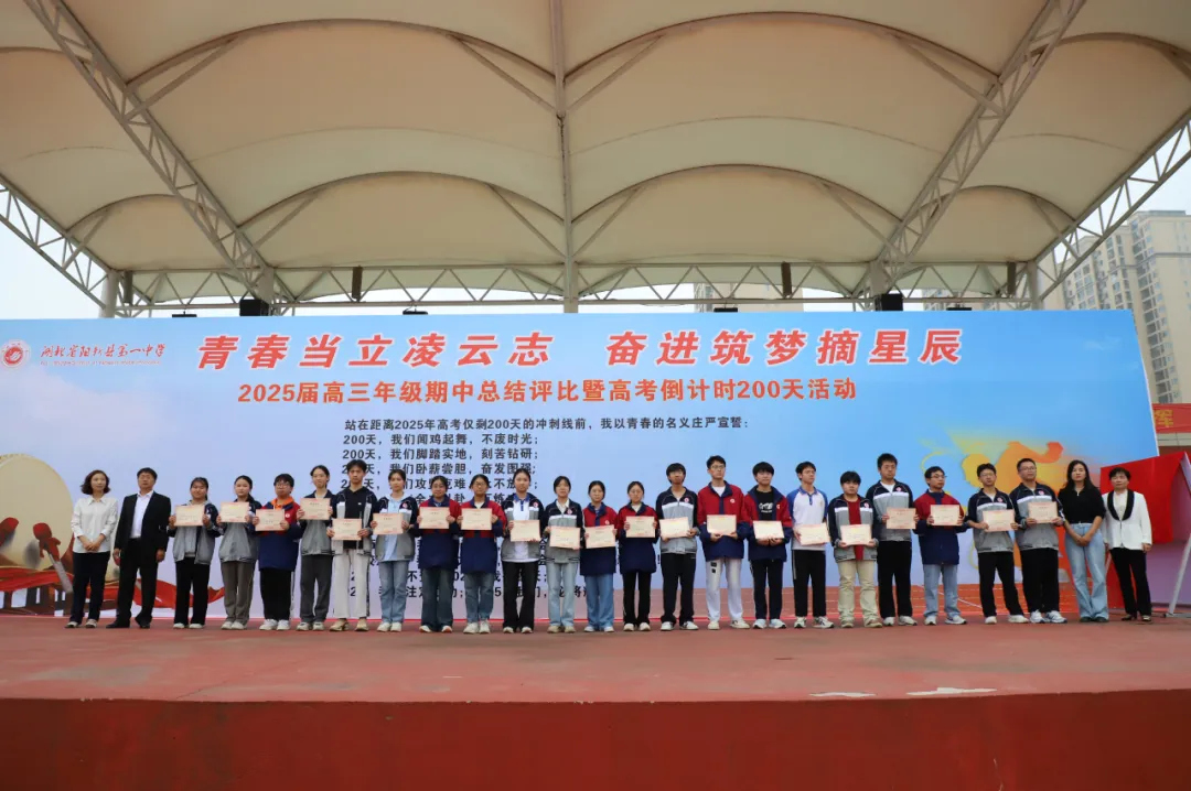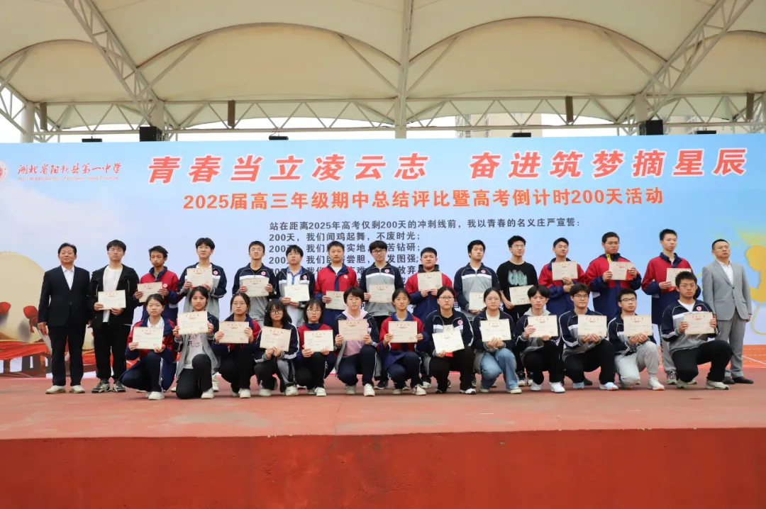 三年砥砺高考途,志在明朝六月辉。11月16日上午九时三十分,阳新一中高三年级在校园田径运动场隆重举行了“2025届高三年级期中总结评比暨高考倒计时200天活动”。阳新一中党委书记方长风、校长江章令携全体校委会成员参加活动,高三年级管理团队、全体师生及家长齐聚一堂,活动由年级主任柏晓晖主持。