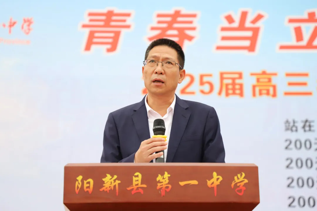 随后,阳新一中党委书记方长风发表主题讲话。方书记表示,为了共同推动备考质量迈上新台阶,各方需扮演好自身角色,做好本职工作。他向家长、老师和学生分别提出三点期望:一是希望家长们理解沟通、做好服务,做孩子成长的陪伴者。二是希望老师们静心备考,耐心辅导,做学生成长的引领者。三是希望同学们不负韶华,不负青春,做人生路上的奋斗者。在高考倒计时200天之际,方书记以五句话寄语高三学子:坚定目标不动摇,夯实基础不冒进,保持心态不浮躁,始终自律不散漫,永葆勤奋不懈怠!