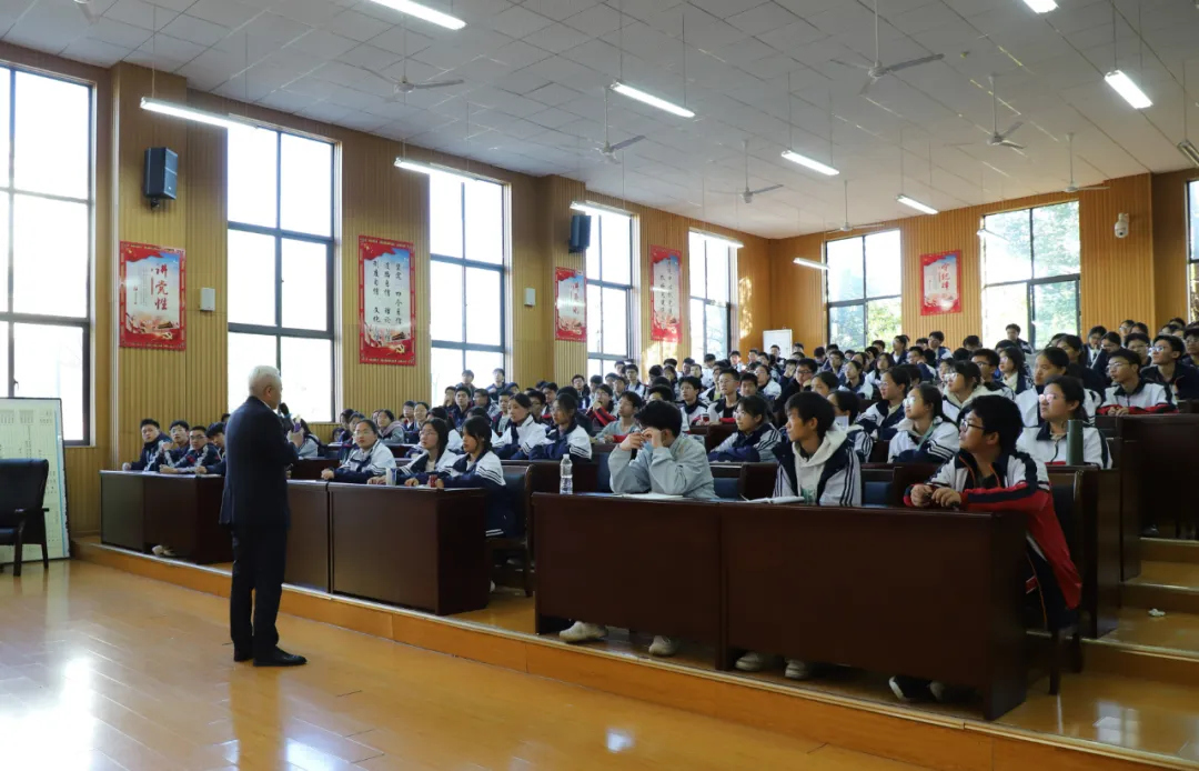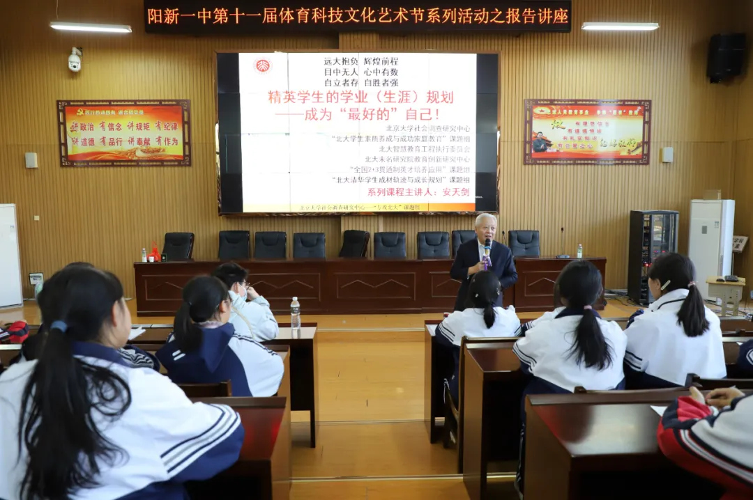 11月29日下午3时40分,明道楼报告厅内,高一、高二、高三清北班的学生们有幸聆听了来自北京大学的资深讲师安天剑教授所作的精彩演讲。安教授以“相信自己”为核心主题,围绕“高中生涯规划”、“梦想与理想”、“心态与自信”等议题展开,以浅显易懂且风趣幽默的方式,向同学们阐述了自律、自信、执行力的重要性,并以北大学子的成长经历为例,进行了生动的阐释。