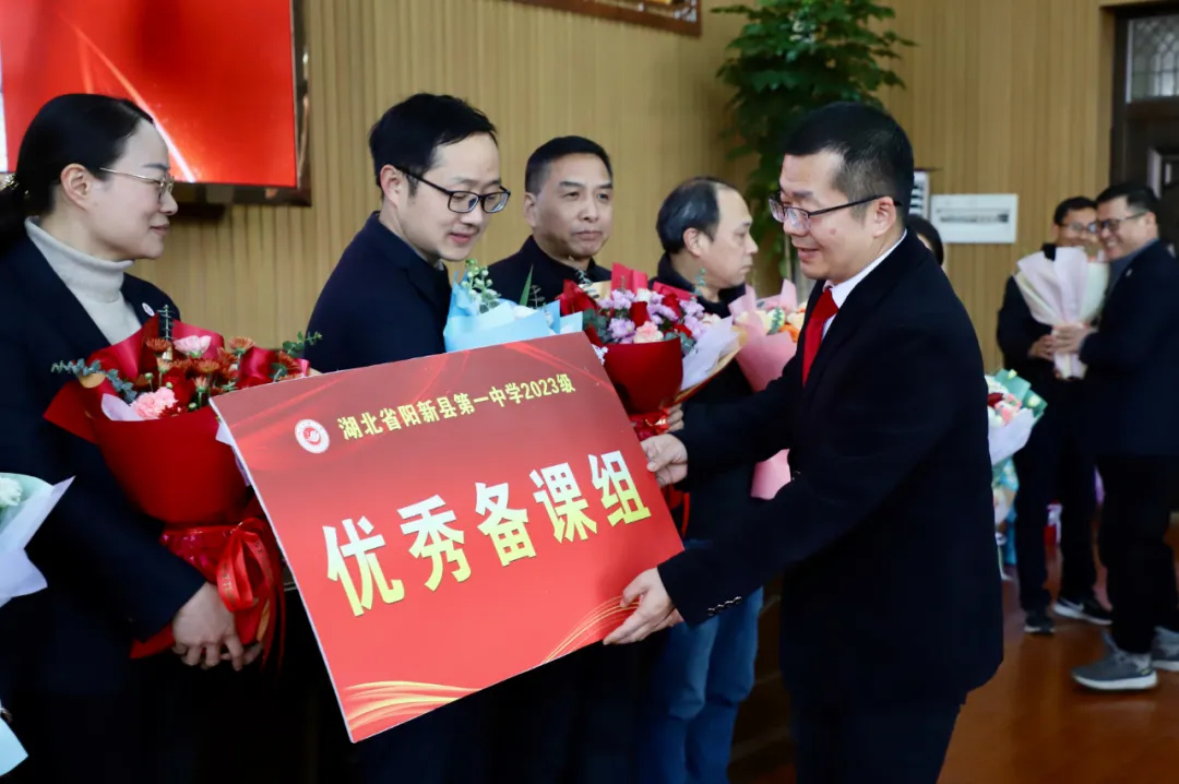 在颁奖环节,高二年级组分别给优胜学生代表颁发奖学金,给优胜备课组、优胜班级送上鲜花,以示表扬和鼓励。