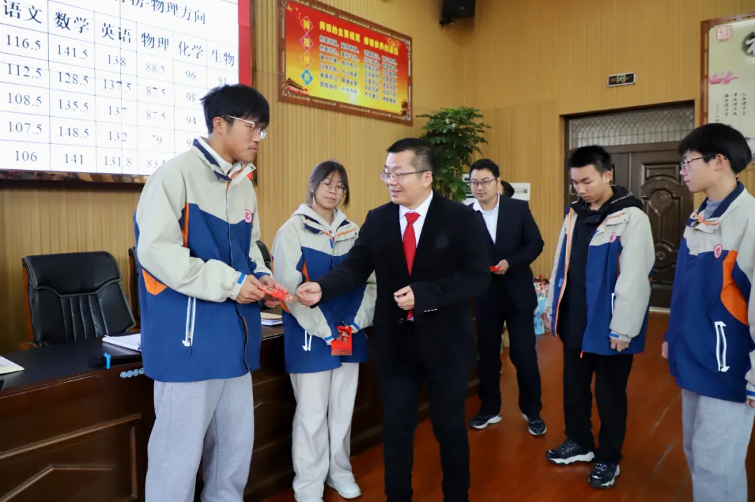 优胜学生代表分别是过清北强基线的高二(24)班谈奥、高二(23)班刘泽旭、高二(20)班廖子龙、高二(22)班李筱瑾和黄焕焕、高二(19)班刘宇轩。