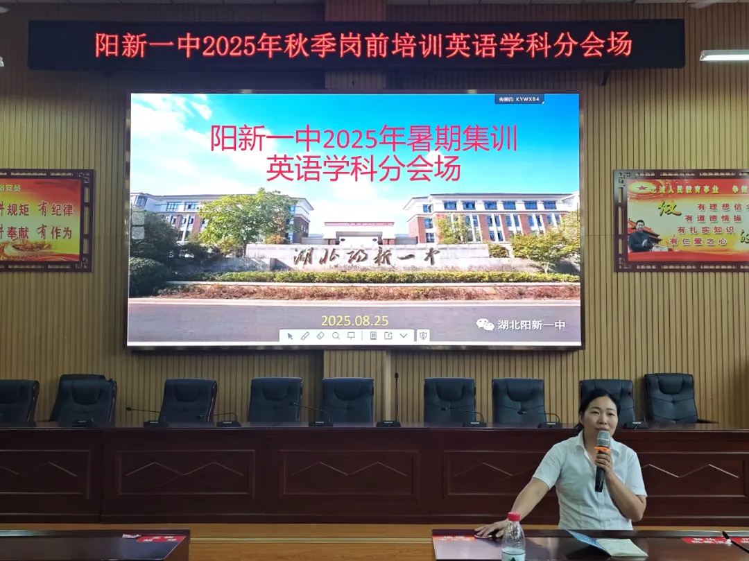 为精准把握高考方向、明确秋季教学重点,助力教师高效开展新学期教学工作,阳新一中2025年暑期教师集训秋季岗前培训英语学科研讨会在阳新一中明道楼报告厅顺利举行。本次会议由英语教研组长余艳老师主持,蹲点领导徐美姝副校长携全体英语教师齐聚一堂,共研备考策略、共话教学成长。