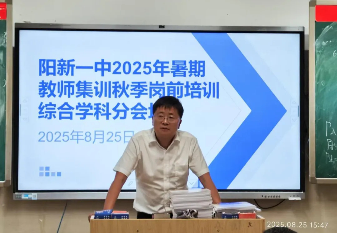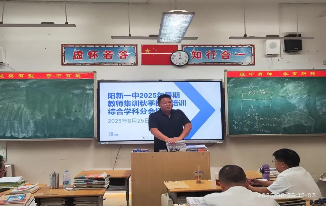 为全面贯彻落实立德树人的根本任务,进一步加强和改进我校综合学科教育教学工作,促进学生健康成长、多元发展。8月25日下午,阳新一中2025年暑期集训综合学科研讨会在明德楼进行,全体综合组老师参加本次活动。