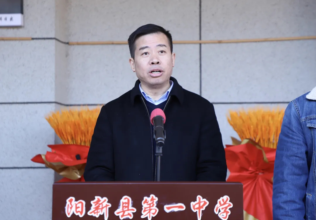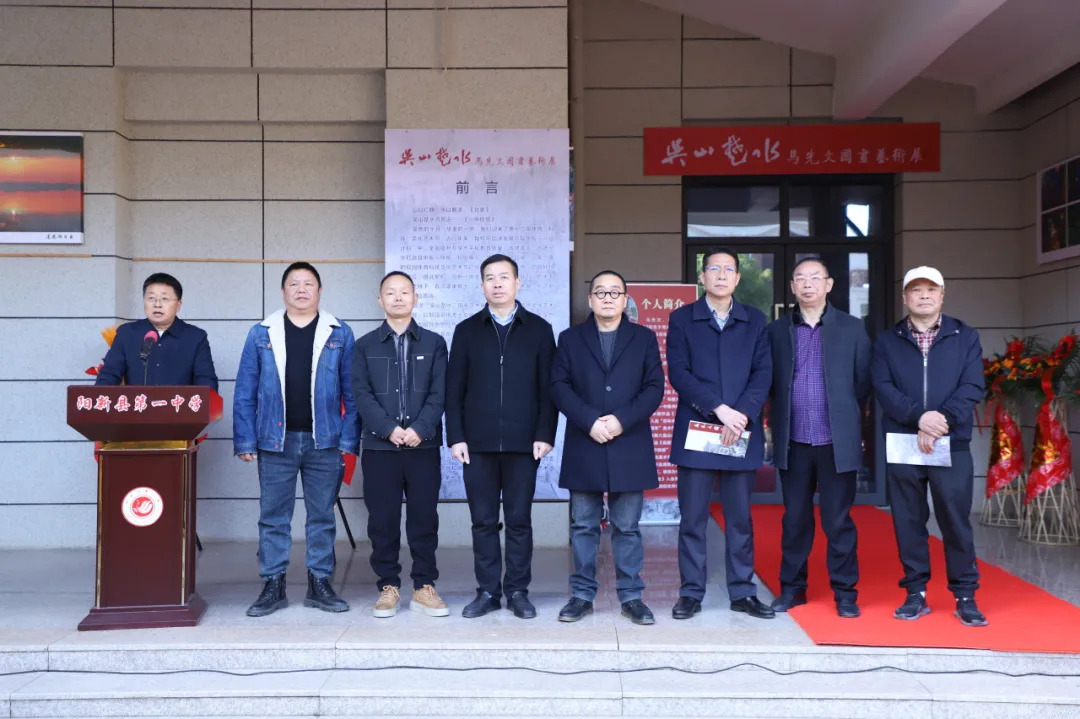 校党委委员、副校长刘杰致欢迎词。他对各位领导、嘉宾及师生的到来表示热烈欢迎,并对为画展付出辛勤努力的青年画家马先文老师、艺术策划者及所有支持校园文化建设的各界朋友致以诚挚感谢。他在致辞中指出,阳新古称“楚头吴尾”,吴山楚水承载着深厚的地域文脉,本次画展是阳新一中首次举办大型国画艺术展,既是师生认识家乡、增进乡土情感的良机,也是学校美育实践与校园文化建设的重要里程碑。
