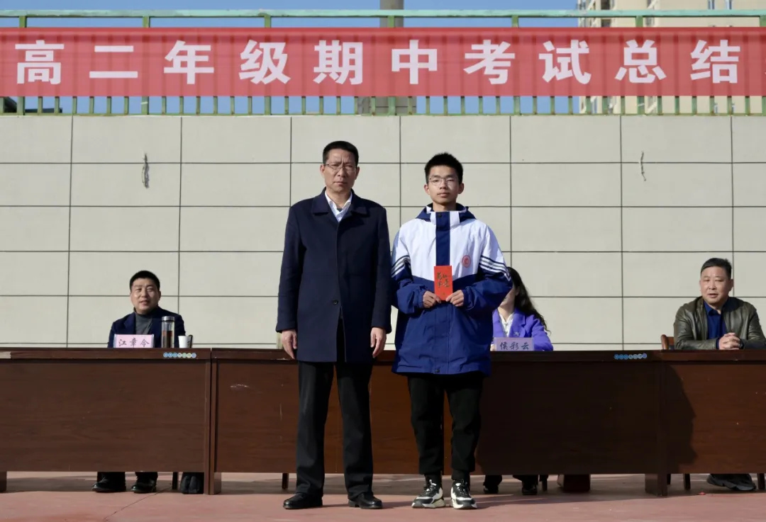 大会举行了隆重的颁奖仪式,依次颁发各班期中考试表彰奖项、物理和历史方向优秀学生奖项,以及优秀教师、班级和学科组奖项,与会领导为获表扬学生、教师颁发荣誉并合影留念。