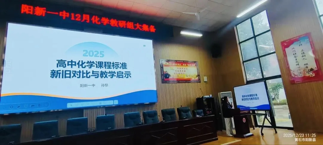 为深入贯彻《普通高中化学课程标准(2017年版2025年修订)》精神,精准把握课标迭代与高考转型的核心方向,切实提升化学学科教学质量与育人实效。12月23日上午,我校化学教研组在明道楼报告厅开展十二月份大集备活动,校党委委员、副校长陈洪星亲临指导。活动由教研组长殷竹明老师主持。