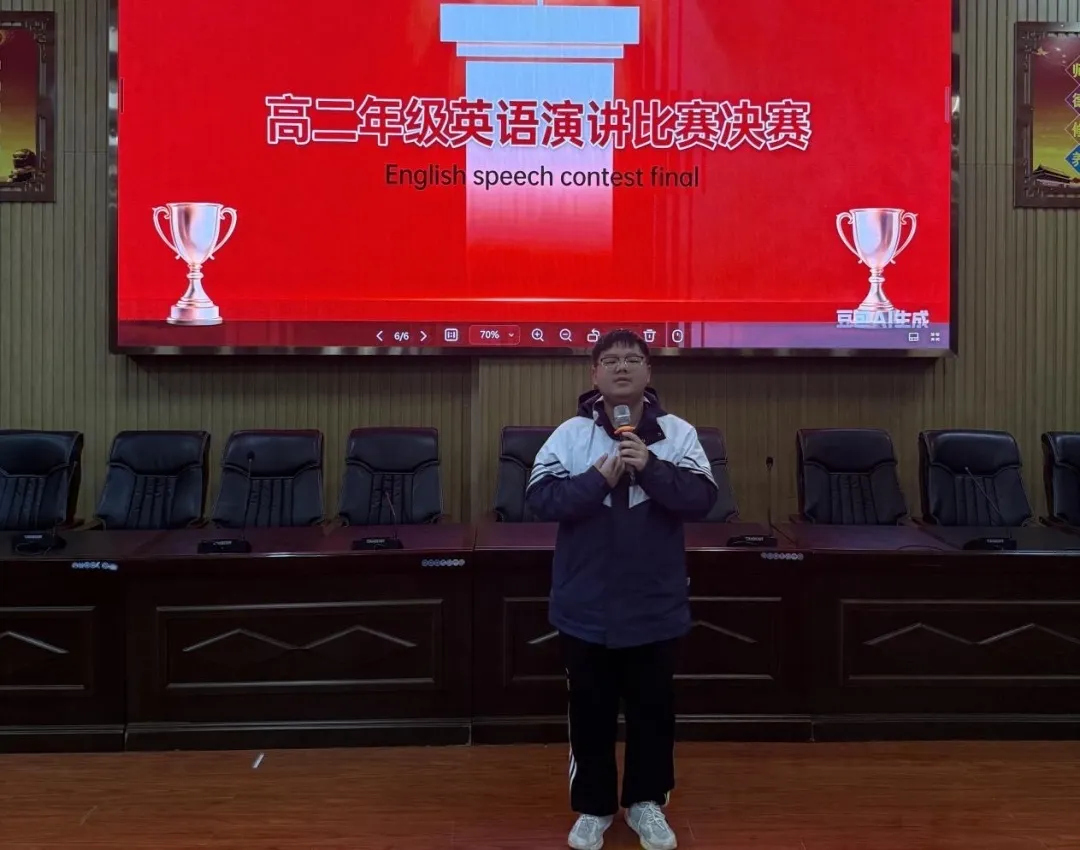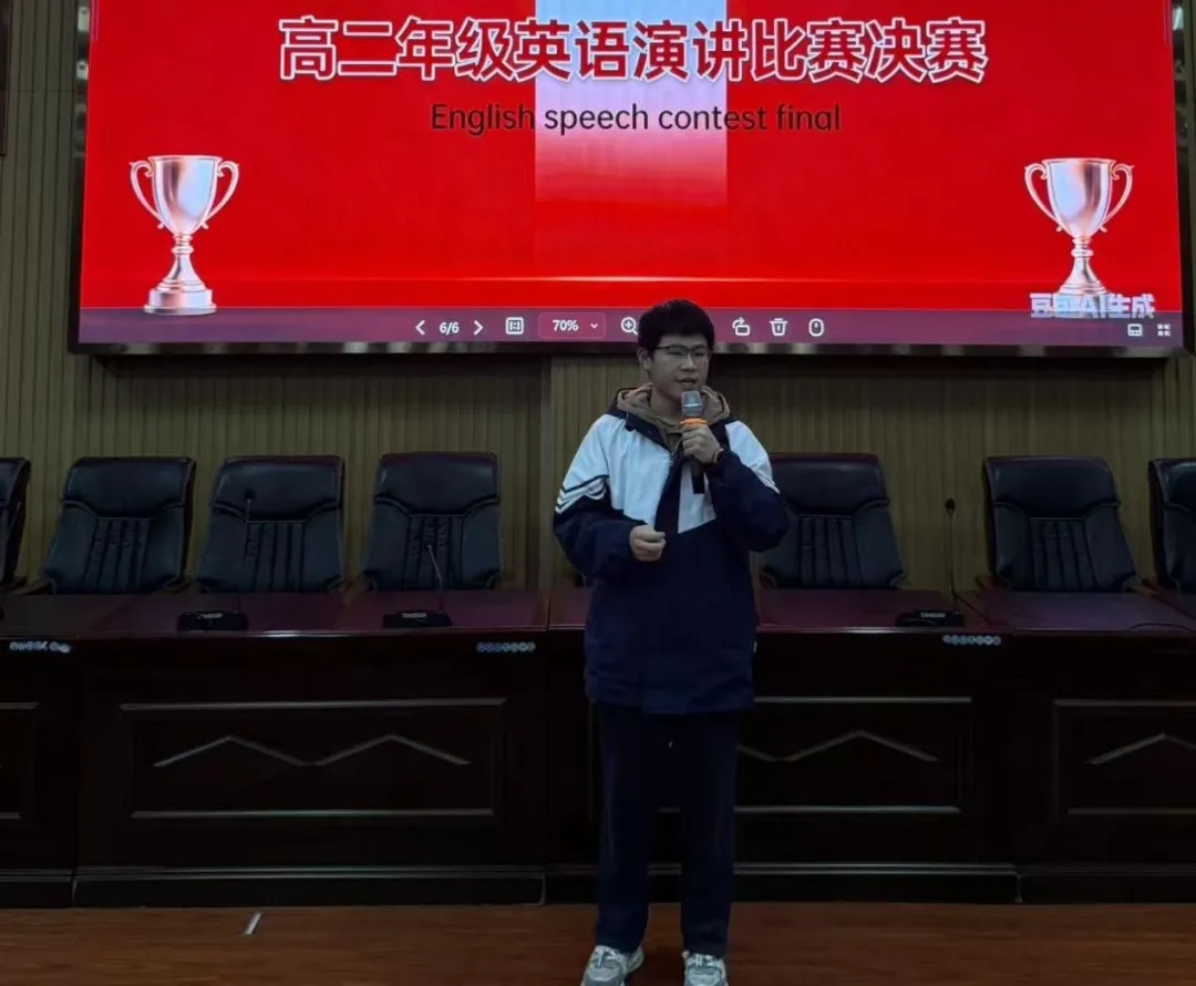 若说写作是无声的思考,演讲便是有声的绽放。1月15日晚,以“How AI Has Reshaped My English Learning Journey”为主题的演讲决赛如期举行,21名班级初赛优胜者同台竞技,各班抽取的10名学生组成观众团,共赴这场语言盛宴。