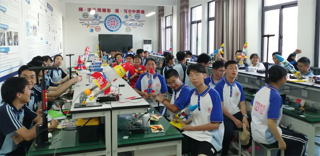 丰富的活动载体是我校科学教育的一大特色,学校每年举办体育科技文化艺术节,已连续开展十二届,通过科普报告、科普剧巡演、水火箭制作与发射、无线电设计与制作、多米诺骨牌创意设计、机器人竞赛等多样化活动,为学生搭建科技创新舞台。同时,学校常态化开展校本科普讲座,柯贤根、朱建华等骨干教师围绕“小发明小制作”、“科技创新小论文写作”、“无线电制作”等主题授课,年均覆盖师生2000多人次,邀请杨叔子院士、樊明武院士等知名专家学者进校讲学,让学生近距离感受科学魅力。