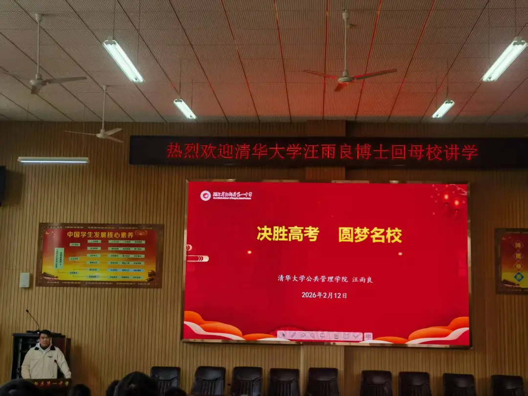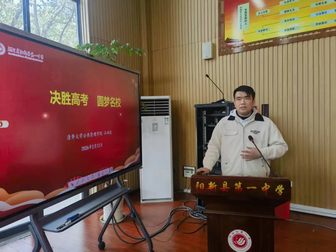 红梅怒放,香樟换装。近日,清华大学公共管理学院博士汪雨良重返母校,为2026届高三学子带来了一场别开生面的讲学活动,为高三学子们拨开了前路的迷雾,更以自身的成长轨迹,为"阳新一中”这块愈擦愈亮的金字招牌,增添了生动的注脚。
