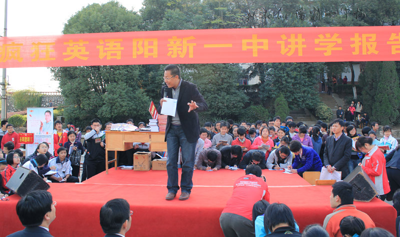 11月23日,疯狂英语创始人李阳老师来我校讲学,下图为报告会现场。