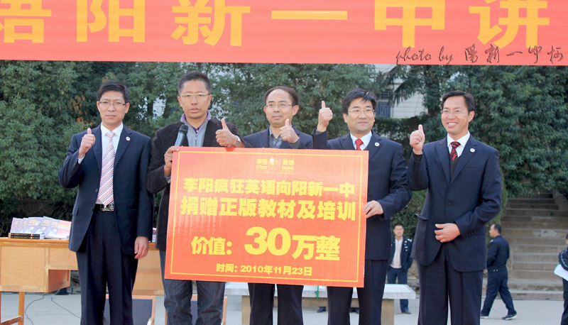 疯狂英语创始人李阳老师来我校讲学,并现场为我校捐赠正版教材及培训,价值30万元。