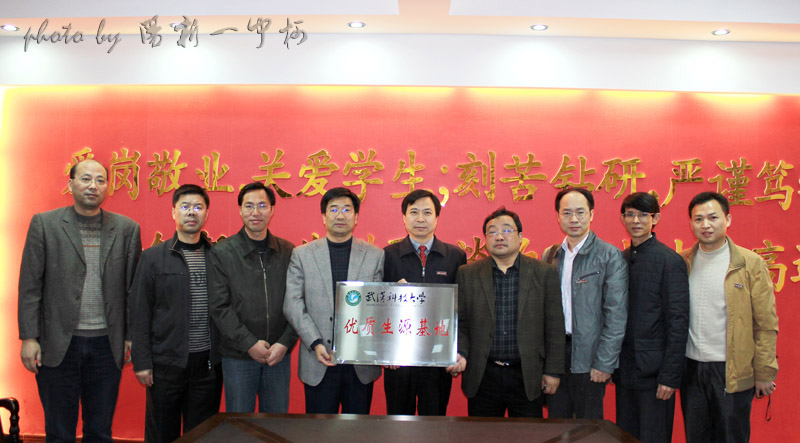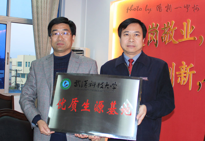 11月25日下午,武汉科技大学党委副书记、纪委书记孙国胜一行专程从武汉来我校授牌,祝贺我校被选为武汉科技大学“优质生源基地”。三年来,我校共有一百余名优秀毕业生考入武汉科技大学,孙书记希望我校继续努力,让更多的优秀学子考上武汉科技大等重点大学。 县教育局党委书记、副局长陈前波等领导参加了授牌仪式。