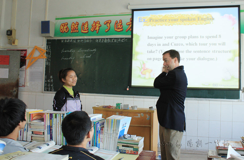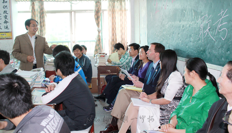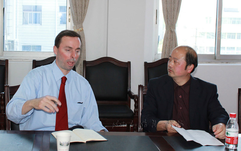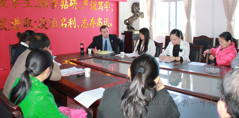 与我校副校长明道树(左三)及英语教师协商访问活动安排 |