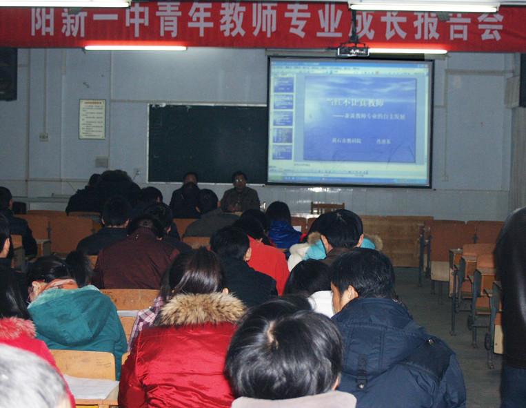 让真教师—兼谈教师专业的自主发展》的主题报告。他结合当前的新课改和自身成长经历告诉青年教师如何成为一名合格的教师,一名优秀教师应具备哪些专业素养,怎样做好自己的专业成长设计。他说,青年教师要有扎实的专业知识,有较高的人文素养和艺术美感,要掌握好教育理论和心理学方面的有关知识,要有奉献精神和良好的教育教学反思、总结习惯,要学会运用正确方法处理好师生之间的关系和同学之间的矛盾,要勤于动手动