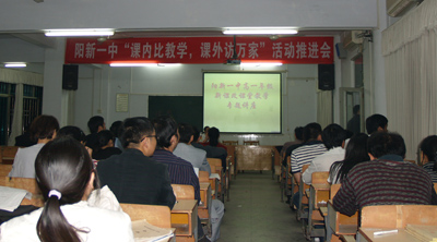 会议由分管高一年级的柯美宝副校长主持。他说,自2008年7月我省实施新课改以来,我校采取多种方式,组织教师广泛参加省内外培训,让老师们及时掌握课改理论,同时,有计划地邀请全国知名专家来校讲学,让全体教师与名师面对面交流,掌握课改教学理念,本次培训也是新课改系列活动之一,希望高一全体教师认真学习,积极探索。