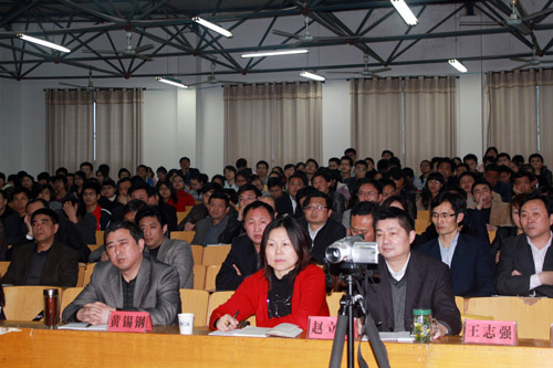 尊重别人,依靠集体,是成功保证、条件; 理想崇高,自强不息,是成长的灵魂、核心。关于学习,他讲述了勤学、深思、躬行、专心、有恒的辩证关系,告诉同学们,长期致力于将学习、思考、实践紧密结合起来是成功的基础。杨叔子院士殷切期望同学们在知识上更富有、在思维上更聪明、在能力上更能干、在身心上更健康、在人格上更高尚。他说,青年是民族的希望、祖国的未来,青年学生是国家宝贵人才资源,年青人只有信念执著,品德优良,知识丰富,本领过硬,敢于创新,勇于实践才能承担国家明天持续发展的重任。杨叔子院士的整场报告气氛热烈,精彩纷呈,他对国家的赤诚与热爱,对理想的不懈追求,对事业的高度热忱和专注,令人感动!杨老一个个感动的故事,一句句深情的话语,让全场师生报以经久不息的掌声。