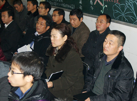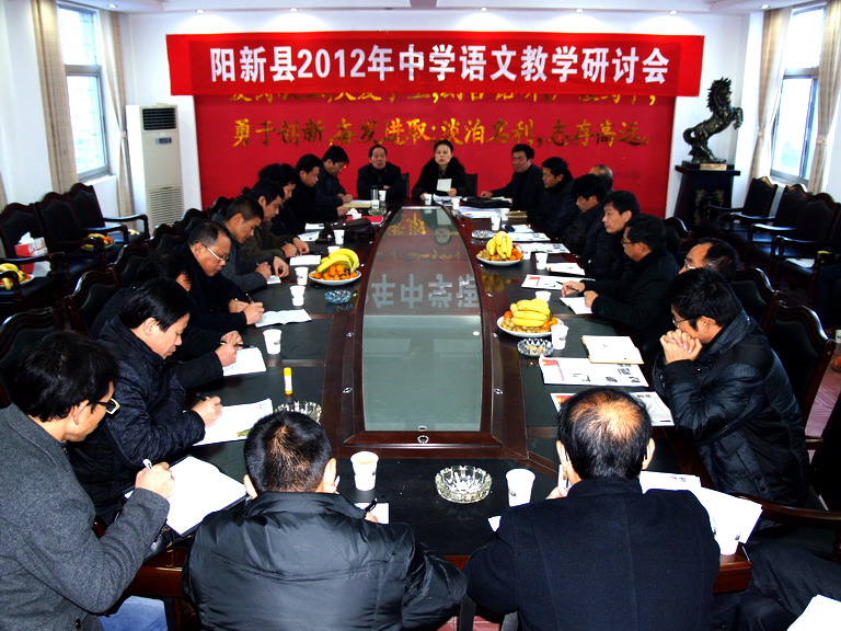 阳新县中语会各位理事,共计30余名领导、专家冒雨参加阳新一中承办的阳新县2012年中学语文教学研讨会。研讨会由阳新县教研室主任、阳新县中语会秘书长胡家朗主持。大会分为三项议程:一是与会领导、专家深入阳新一中课堂听课,二是与会领导、专家就听课内容展开语文研讨,三是召开阳新县中语会年会。