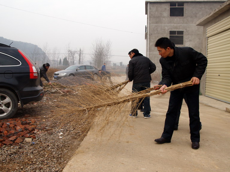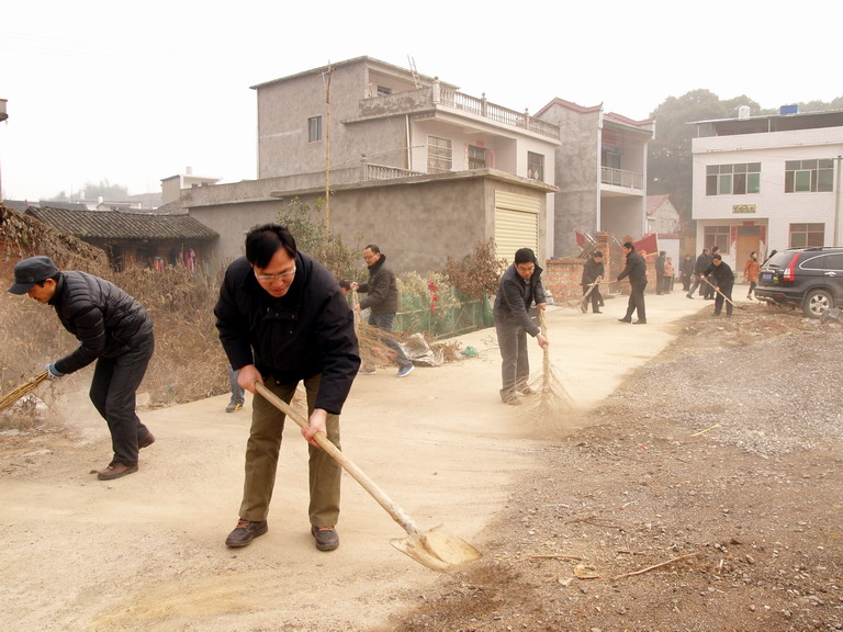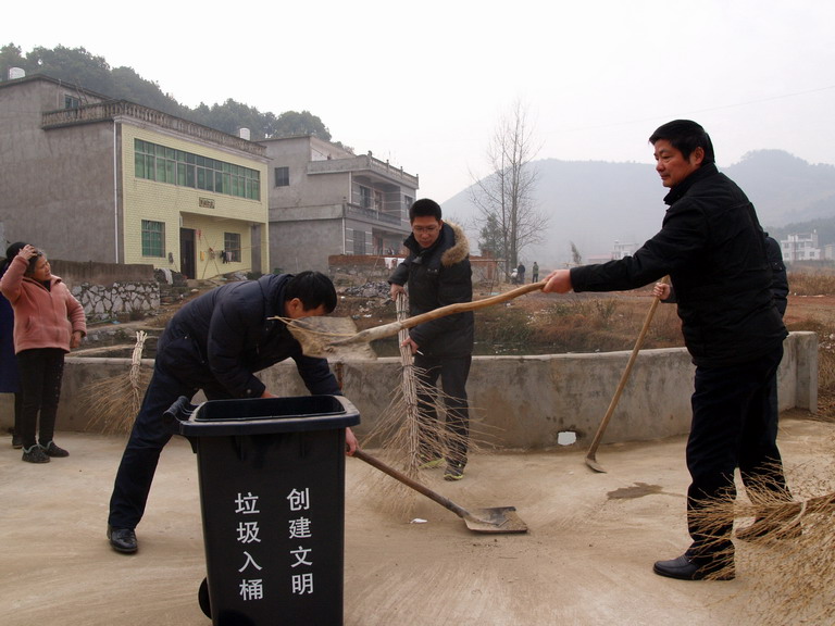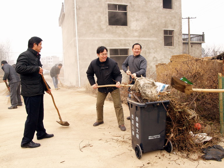 12月25日早上8点,太阳躲进了厚厚的云层,迟迟不肯出来,天气异常寒冷。我校20名中层干部在赵立中校长的带领下驱车来到木港镇太平村开展“万名干部进万村洁万家”活动。首先我校向该村赠送了20个标准的城市专用塑料垃圾桶,随后各位干部拿起工具干得热火朝天,尽管灰尘飞扬,寒气逼人可没有人偷懒,体现了我校干部一贯的务实之风。一个多小时后,原来脏乱的村落,被打扫的干干净净,给人耳目一新的感觉。