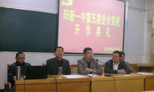 4月6日晚,我校第5期中学生业余党校开学典礼在教学楼二楼多媒体教室隆重举行。阳新县委党校原常务副校长、高级讲师潘世信,一中副校长、副书记明道树,纪检书记方长风,团县委副书记柯希福,团委书记徐美姝,校办副主任李雁鸣,初中部年级主任陈世明以及团委部分教师参加了本次会议。