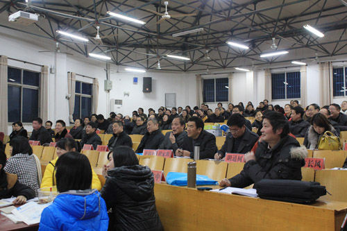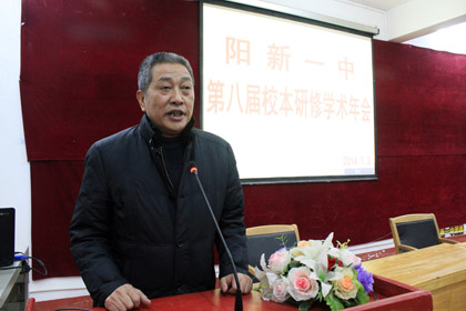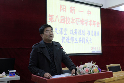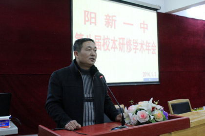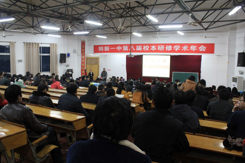 一中副校长明道树作了有关“立足课堂,统筹规划,推进课改,实现师生共同成长”的专题报告。报告中,他对2013年的教科研工作进行了回顾和总结。他说,阳新一中教学成绩的取得与五个因素密不可分:一是打造学习型组织,提高教师业务素养。自新课程改革实施以来,一中许多教师逐渐树立了终身化学习观念,积极参与校本研修,网络研训,不断给自己充电加油;二是推行课题研究,提高教师科研水平。过去的一年,一中的课题研究取得了丰硕的成果,许多省市级课题顺利结题,并被评为优秀课题,广大教师结合自己的工作实践,开展问题研究的能力得到提高;三是加强“九校联盟”,提高教师教学水平。通过九所兄弟学校的互相交流,资源共享,教学研讨,每所学校的教师实现了成长,教学质量得到了提高;四是坚持科学备考,落实教学常规。学校非常重视与名校的交流,采取“请进来走出去”的方式让教师学习先进的备考经验,同时注重备、教、批、辅、考、评、省(反思)教学常规环节的落实;五是坚决推行课改,打造高效课堂。课改的难点在于教师教学方式的转变,学校结合新课改相关精神,提出 “121三互课堂”教学模式,通过自主、合作、探究的学习方式发挥学生学习的主观能动性,实现了课堂效果、效率、效益的提高。