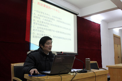 最后,一中校长赵立中作了《再谈高效课堂》的专题报告。在他的报告里,他与大家分享了阅读李炳亭老师《高效课堂22条》一书的心得体会,希望广大教师加强学习,树立课改理念,掌握高效课堂的目标、核心、要求、特点、基本元素、评价、组织与管理,不断实践,打造自己的高效课堂。