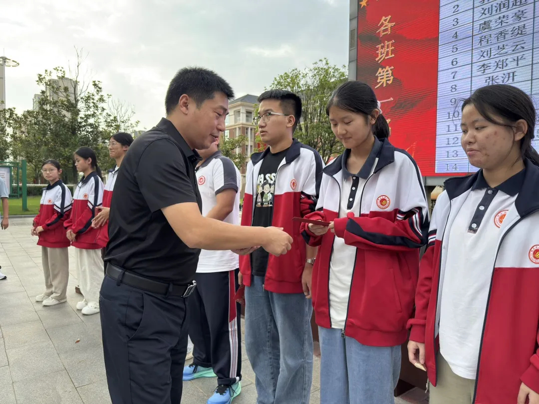 为表扬我校高三在9月新起点考试中表现优秀的学生、教师、备课组和班集体,激发全体高三师生备考热情,9月24日下午3点,2026届高三年级在至美楼广场举行9月“新起点”考试表扬大会。校党委副书记、校长江章令、高三年级管理团队、高三全体师生参加此次大会。大会由校党委委员、副校长刘杰主持。