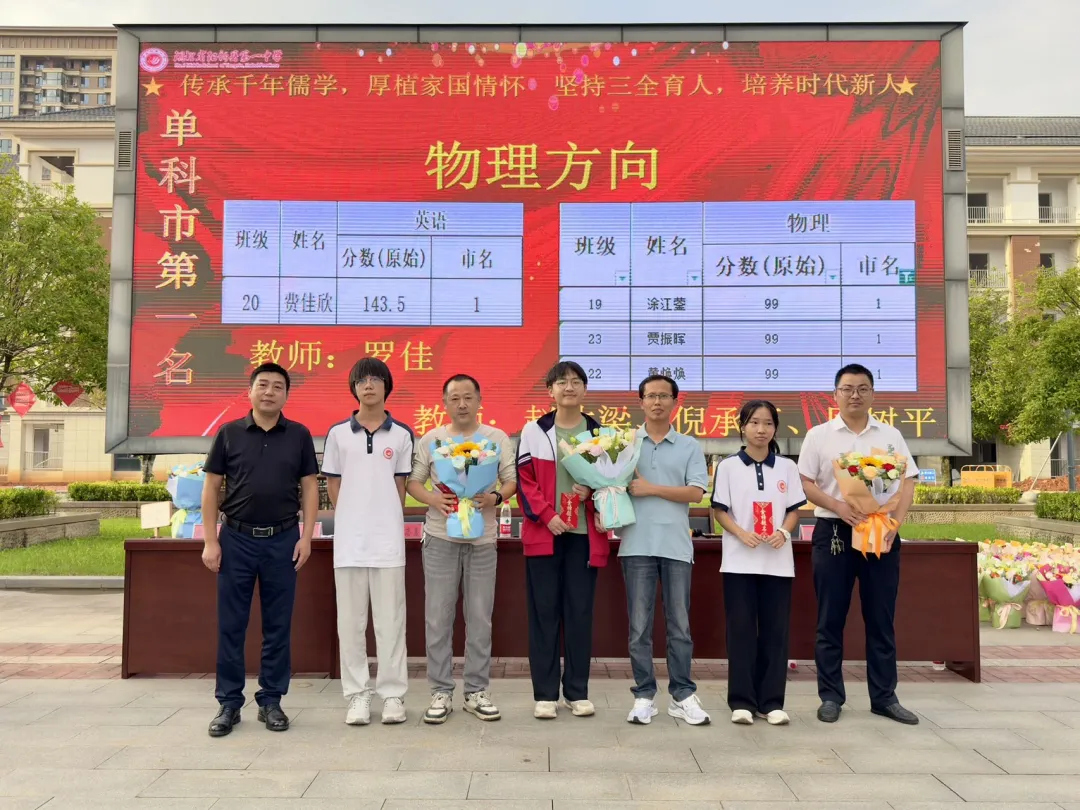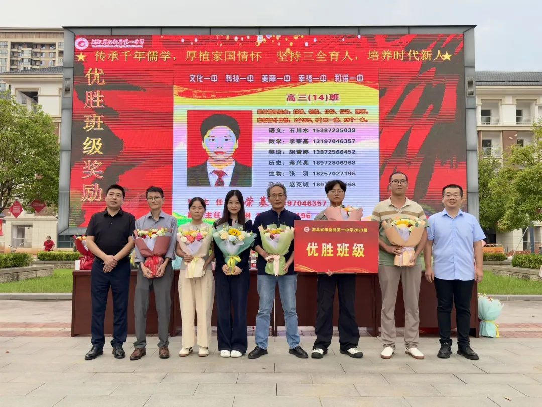 高三年级副主任陈松林通报新起点考试成绩,宣读优秀学生、优秀备课组、优秀班集体名单。江校长为高三优秀学子、优秀备课组、优秀班集体颁奖。