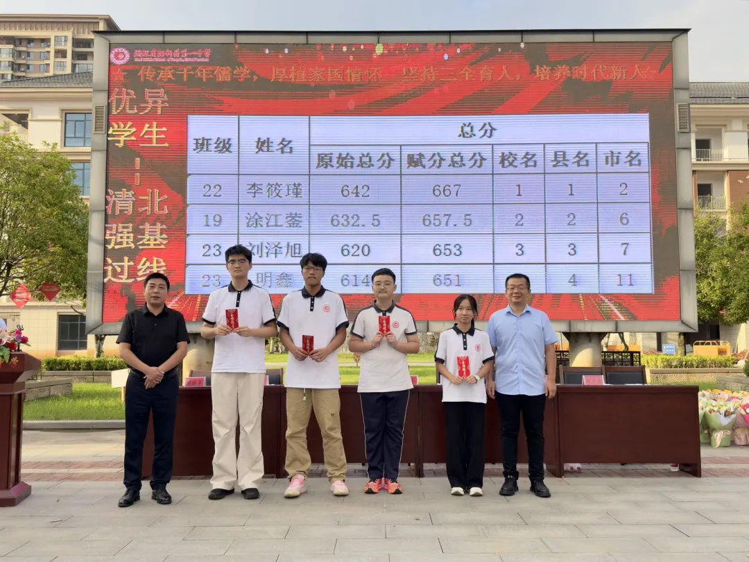 本次高三9月“新起点”考试,我校4人过清北强基线,高三(22)班李筱瑾以667分位居黄石市物理方向第二名,双一流过线266人,特殊类本科过线975人。这为高三复习备考凝聚了力量,注入了动力,鼓舞了士气。 高三全体师生一定锚定目标,做实过程,戒骄戒躁,再攀新高。