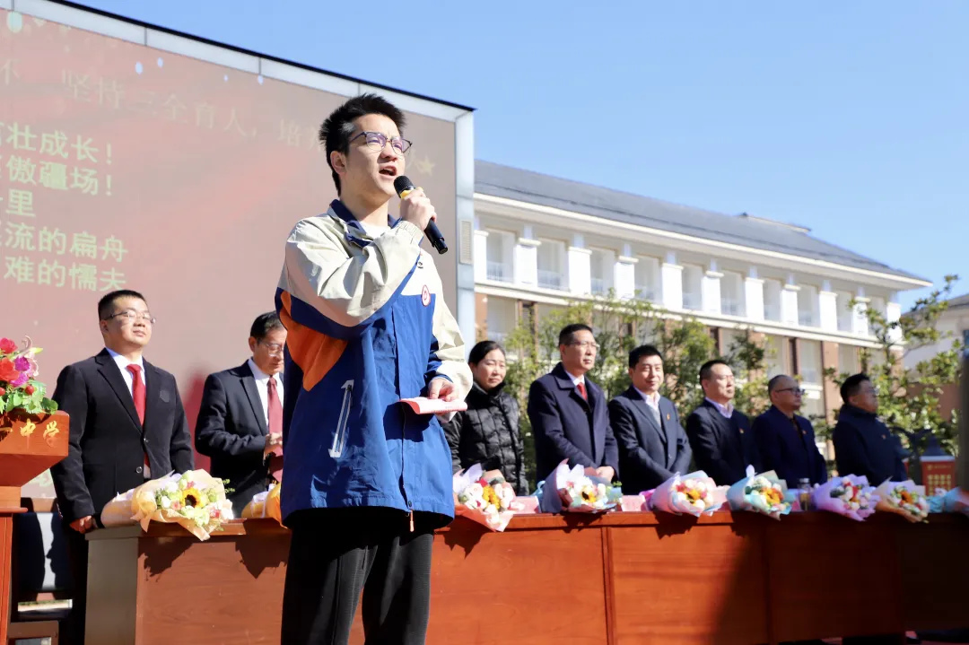 高三年级副主任赵才梁老师作《于爬坡中聚力,于坚持中前行》发言。他强调复习已进入攻坚期,正值爬坡过坎时,每一步的坚持都很关键,全体高三教师将始终坚守三尺讲台,以耐心陪伴化解学子的焦虑,以精准指导扫清备考的障碍,与同学们并肩作战,一同跨过沟壑,攀上高峰,共赴理想的彼岸!