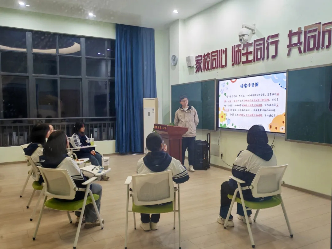 11月22日,我校阳光心理课程中心迎来了一场温暖而深刻的心理成长之旅。来自湖北师范大学应用心理学专业的三位实习生——容煜崴、黄奕佳、苏俊豪,围绕高中生常见的心理困扰,分别开展了《我,很酷的人》、《和情绪和解》、《人生拍卖会》三场主题团体辅导活动,从自我探索与情绪调节两个维度出发,助力同学们在互动中认识自我、接纳情绪。