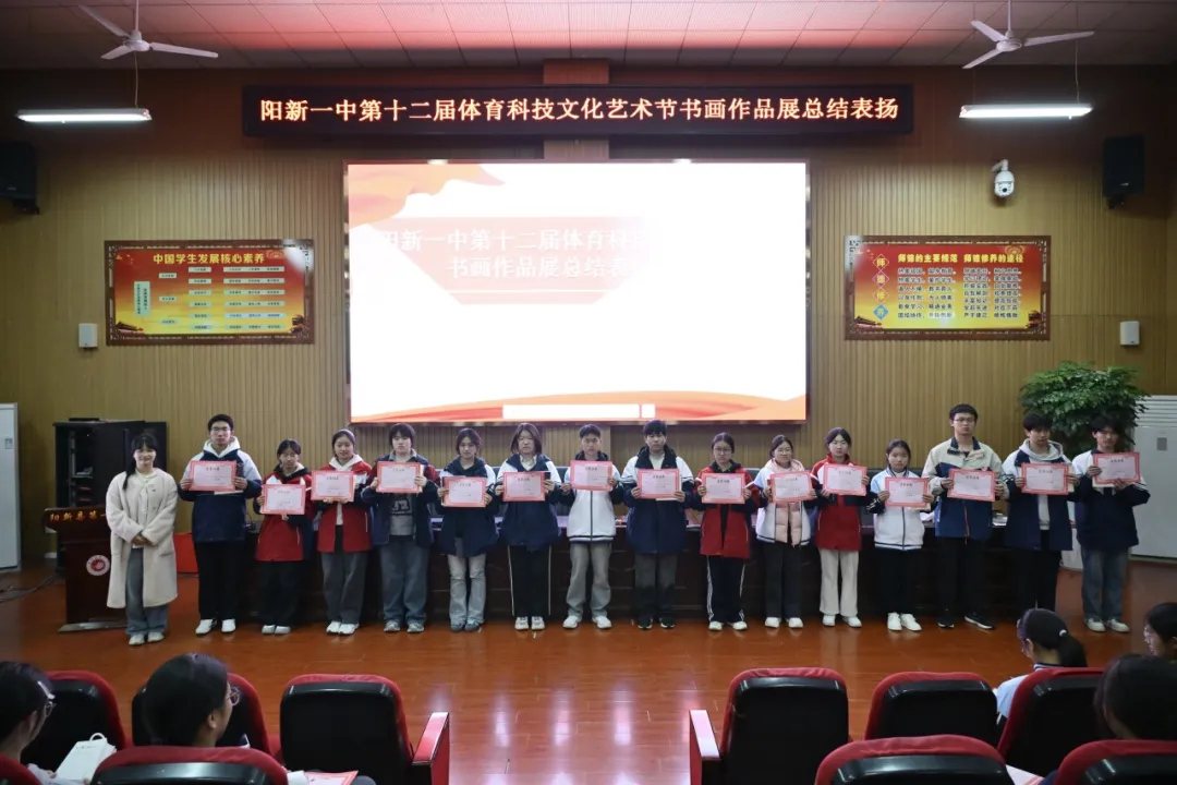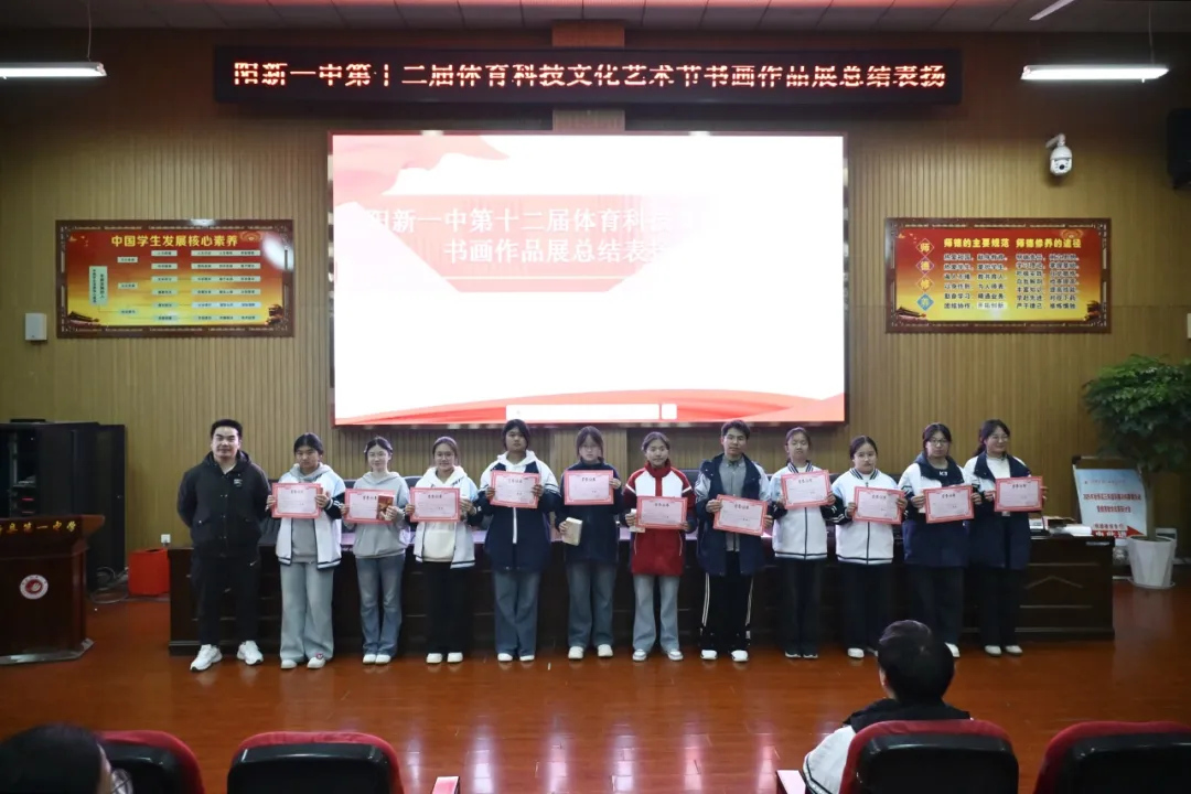 12月19日晚,我校在明德楼报告厅举行第十二届体育科技文化艺术节美术作品表扬活动。现场气氛热烈,获表扬学生依次上台,领取荣誉证书和奖品。此次获奖作品题材丰富、形式多样,展现了同学们积极向上的审美追求和扎实的艺术素养。