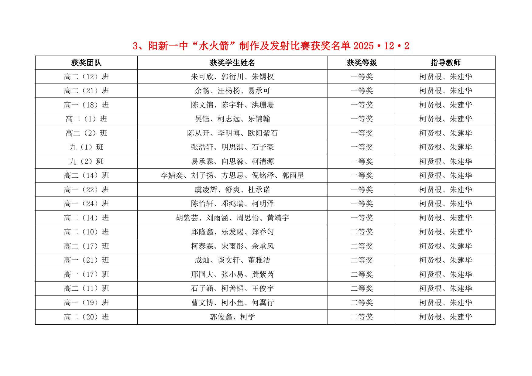 在科技创新小论文评选中,学生们聚焦生活需求与科技前沿,涌现出众多佳作。高二(19)班吴永乐的“智能声控雨伞及离心脱水装置”、高二(21)班邱晓波团队的“智能教室环境优化系统”等59项作品获一等奖,这些作品将科技与日常场景深度融合,兼具实用性与创新性。电子制作和机器人爬杆比赛中,柯贤根、朱建华、周树平、王有海等指导老师带领学生攻坚克难,高三(16)班刘祖送、九(1)班王子轩等学生凭借扎实的技术功底斩获一等奖。“水火箭”比赛现场更是精彩不断,高二(12)班、高一(18)等班级团队精准把控原理,展现了出色的协作与动手能力。