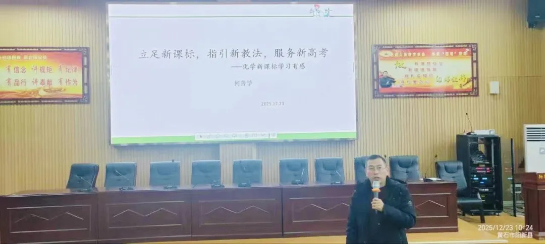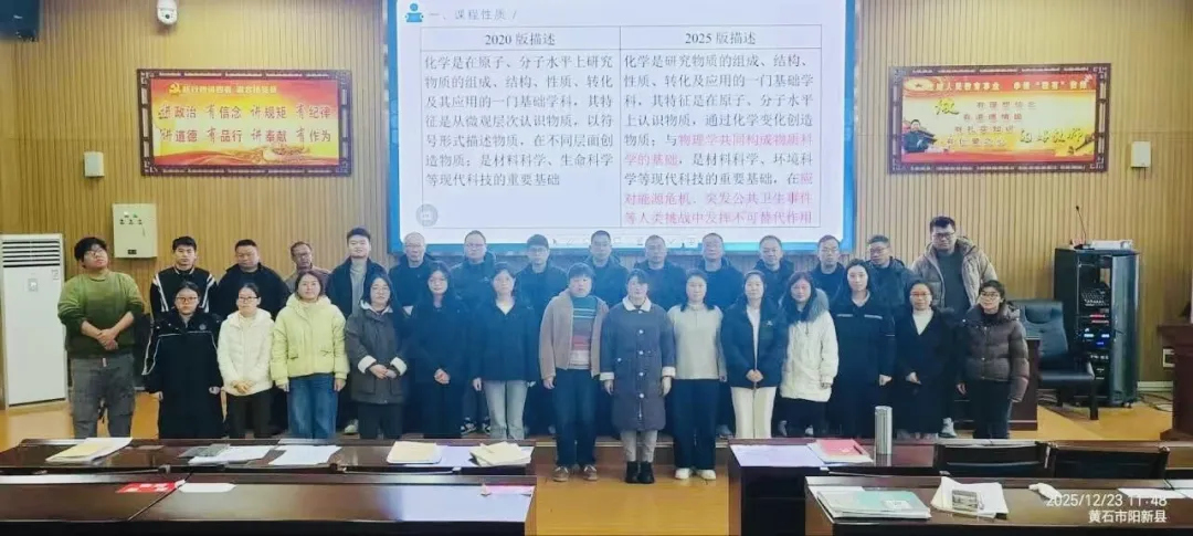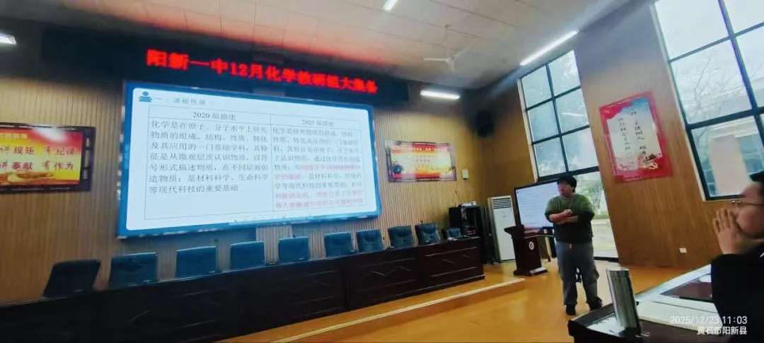 为深入贯彻《普通高中化学课程标准(2017年版2025年修订)》精神,精准把握课标迭代与高考转型的核心方向,切实提升化学学科教学质量与育人实效。12月23日上午,我校化学教研组在明道楼报告厅开展十二月份大集备活动,校党委委员、副校长陈洪星亲临指导。活动由教研组长殷竹明老师主持。