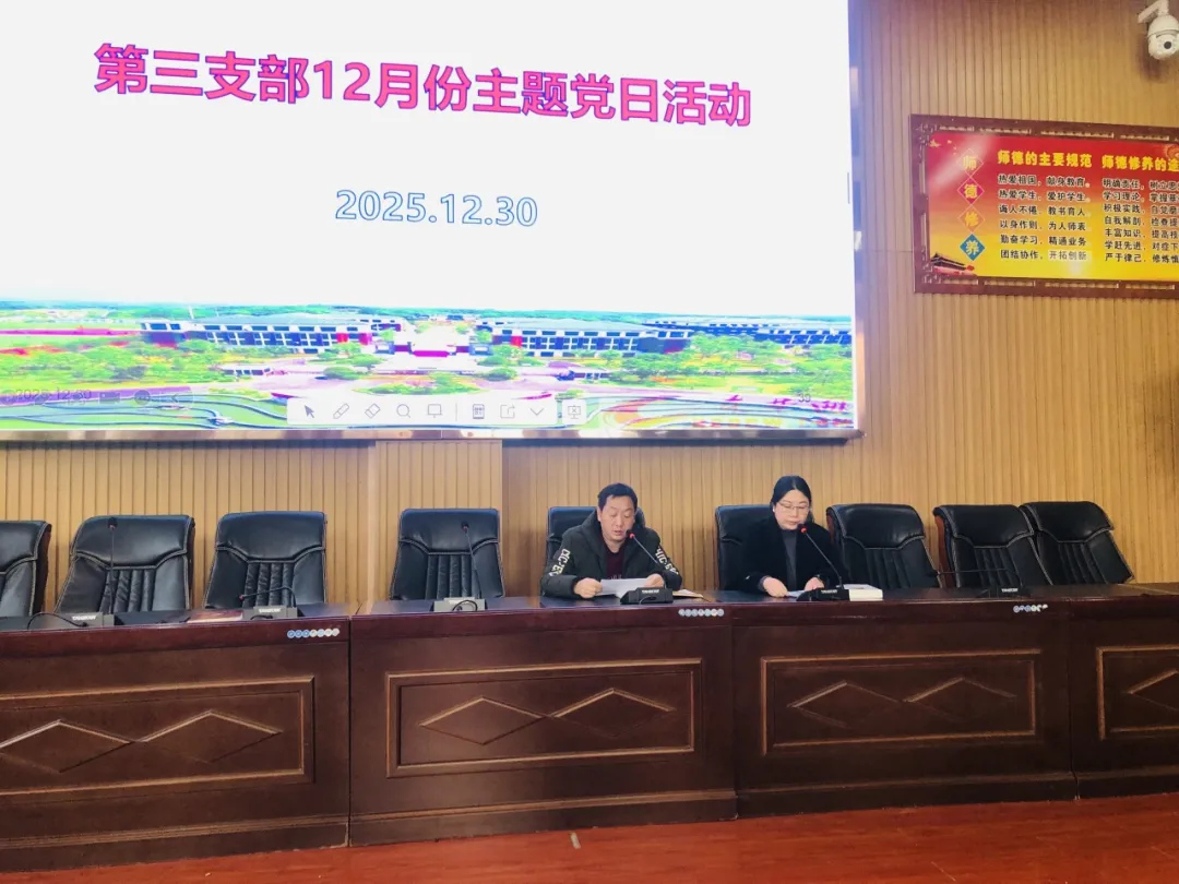 12月30日上午,我校第三党支部开展以“弘扬宪法精神,践行育人使命”为主题的十二月支部“主题党日”活动。校党委委员李雁鸣及支部全体党员教师参加活动。活动由第三党支部书记邓丽娟主持。