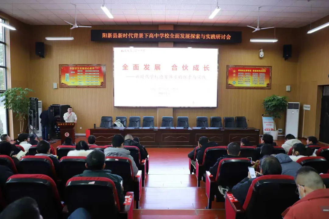 为深入学习贯彻全国教育大会精神,精准锚定《教育强国建设规划纲要(2024-2035)》战略部署,全面落实“立德树人”根本任务,并积极推动“人工智能+教育”融合行动,推动新时代背景下高中学校的全面发展与建设。1月4日下午,我校在明德楼报告厅举办“AI赋能,德育引领——新时代背景下高中学校全面发展探索与实践研讨会”。本次研讨会由县教科院主办,阳新一中承办,杭州铭师堂协办。县教科院柯于涛院长,全县高中学校领导、各科教研员,我校党委副书记、校长江章令及校党委班子成员、全体班主任、青年教师参加活动。本次会议由校党委委员、副校长刘杰主持。