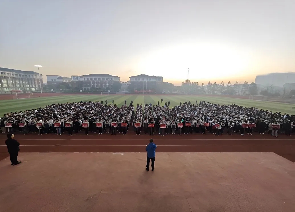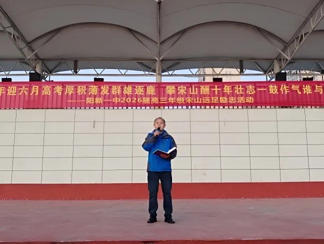 为鼓舞高三学子备战期末士气,浓厚全力以赴的备考氛围,助力全体同学以优异成绩迎接新春佳节,1月14日早晨,2026届高三年级在运动场开展新年第一次“国旗下的讲话”活动。校党委委员、副校长刘杰及高三年级管理团队、全体学生齐聚运动场,共同吹响期末冲刺的号角。此次活动由年级主任程志勇主持。